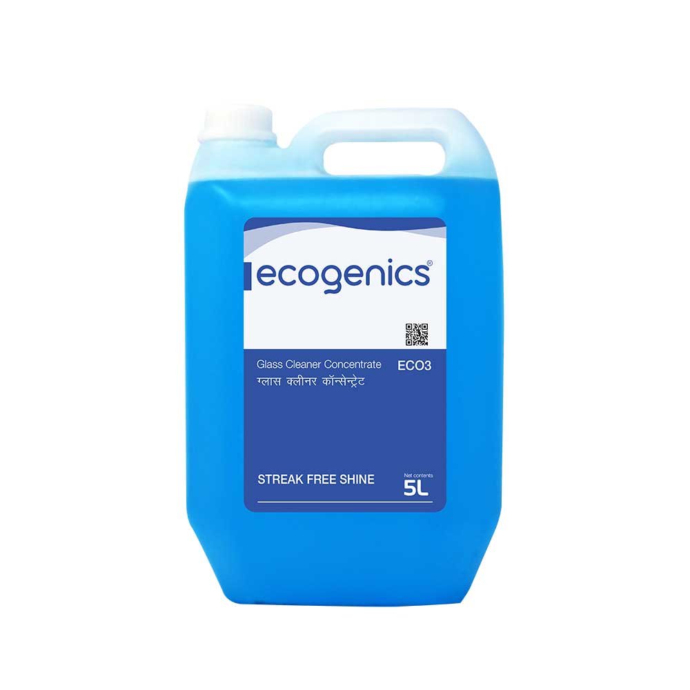 Ecogenics India Glass Cleaner An all-around cleaning solution for all glass and laminated surfaces. The dirt-cutting micro-systems provide best results while killing the germs. Ecogenics Glass Cleaner is a multi-purpose liquid spray suitable for all household purposes including glass, kitchen and table tops, stainless steel, etc. It is non-flammable, non-caustic, non-corrosive & pH neutral The unique formula uses the micro-organisms to work as cleansing agents and breaks down the fats and oils that the bacteria feed on.